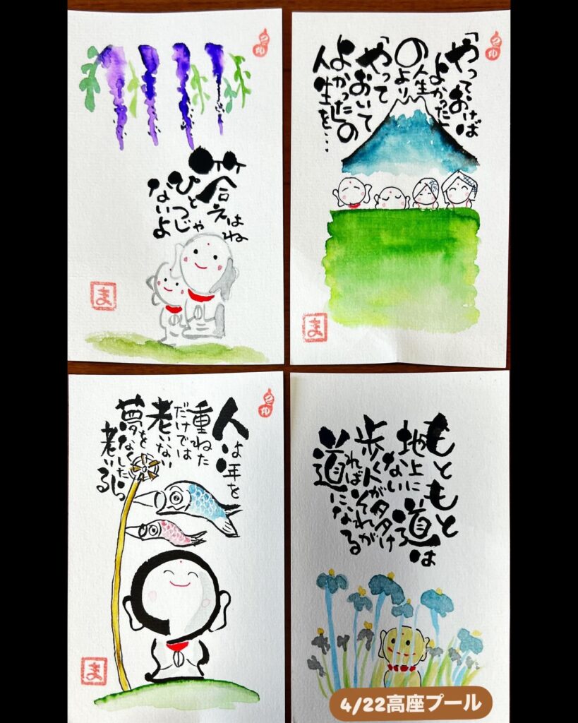 ︎学びの日︎4/22、高座プールで幸座を受けました月に一回くらいしかいけないので、参加する度に緊張します🫨今回は季節もの全部絵の具じゃなくて、カラー筆ペンでもいいのよーのお題あぁ〜!コレは水仕事ってコトですねいつも絵の具ばっかりであまりカラー筆ペンを使ってこなかった買って満足してたかもしれないカラー筆ペンを使ってみると思った色が出ない見兼ねて師匠がミニパレットを差し出してくれたこの小さいパレットにそれぞれを入れると混ざらないでしょと️ホントだ!少ししかインクを出さないからちょうどいいそれにカラー筆ペンを混ぜて色を作ったことなかった  これは新発見手汗がひどかったが、とてもいい学びとなりました🧑‍ありがとうございました#己書#おのれしょ#座間市#綾瀬市#大和市#海老名市#相模原市#横浜市#出張幸座やります#筆ペンアート#筆文字#癒しの書#カッコいい書#温もりのある書#さにぃ道場#sunny_onoresho#誰でもOK#やってみよう#出会い#新発見#習い事#趣味#友達作り#プレゼント#お礼状#バースデーカード#年賀状#看板#お祝い for Instagram