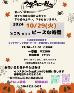 すっかり秋になりましたね過ごしやすくて、私は好きな季節ですこんないい時期から己書始めてみませんか🖌️10月のスケジュールです↓↓️10/10(木) ふぁみりーかふぇ ひばりの森🌳 13:30〜15:00 ◎座間市ひばりヶ丘2-39-14 046-204-6539 定休日 水、日、祝️10/12(土) カフェ 憩いのぜんさん ①10:30〜12:00 ②13:00〜14:30 ◎座間市栗原2706-8 046-252-1126️10/25(金) カフェ ハロゲン 10:30〜12:00 ※ランチセット、オーダー制です ◎座間市相模が丘1-25-1 リビオタワー 小田急相模原コモンズざま3F 042-705-3610 定休日 第一火曜日️10/29(火) カフェ ピースな時間️ 13:30〜15:00 ※1オーダー、お願い致します ◎大和市鶴間1-9-16 080-5462-9773 定休日 日、月️10/31(木) マナカフェ 10:30〜12:00 ※幸座後、ランチプレートのオーダーをお願い致します ◎綾瀬市大上3-24-12 0467-84-8751 定休日 月、火、水どの幸座も筆ペン貸し出し、購入もできます 2回目からは購入してください#己書#おのれしょ#座間市#綾瀬市#大和市#海老名市#相模原市#横浜市#筆ペンアート#筆文字#癒しの書#カッコいい書#温もりのある書#さにぃ道場#sunny_onoresho#誰でもOK#やってみよう#出会い#新発見#習い事#趣味#友達作り#プレゼント#お礼状#バースデーカード#年賀状#看板#お祝い for Instagram